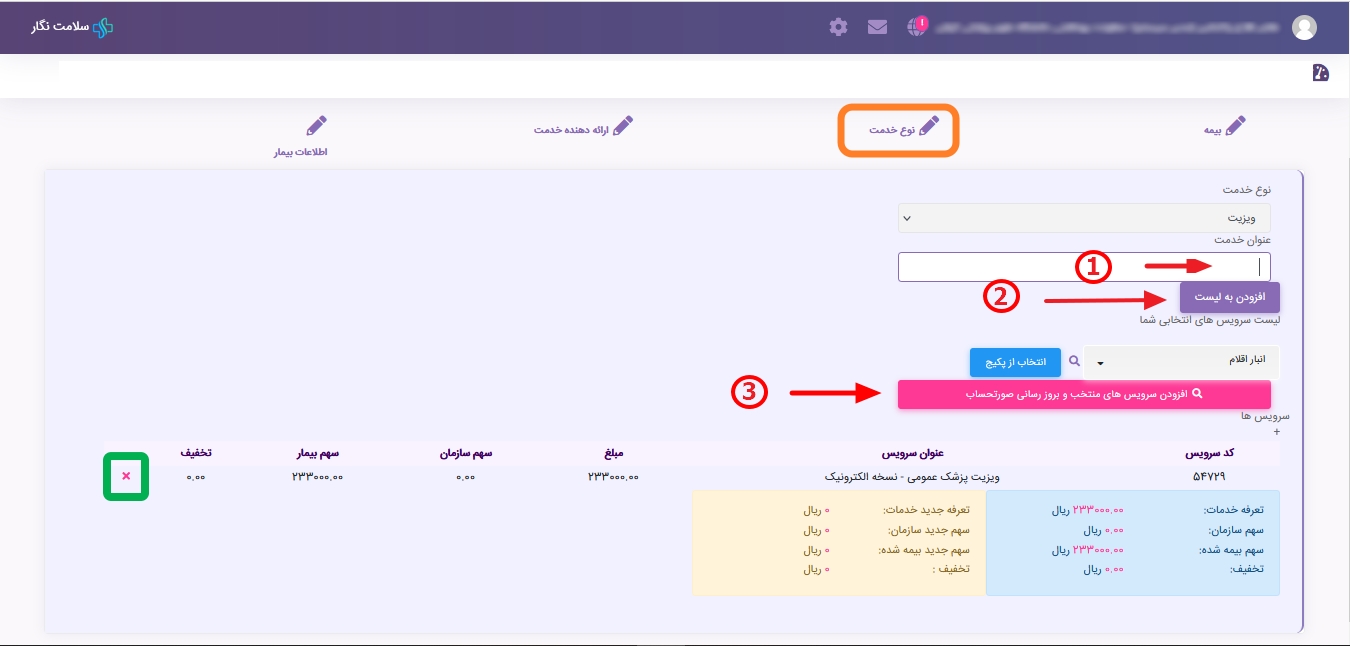 ➖صورتحساب پذیرش مبلغ خدمت را برای شما محاسبه میکند و در صورت تمایلِ مراجعه کننده ثبت و پرداخت انجام دهید.